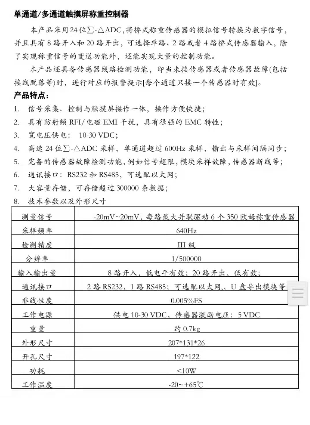 單通道多通道觸摸屏稱重控制器
